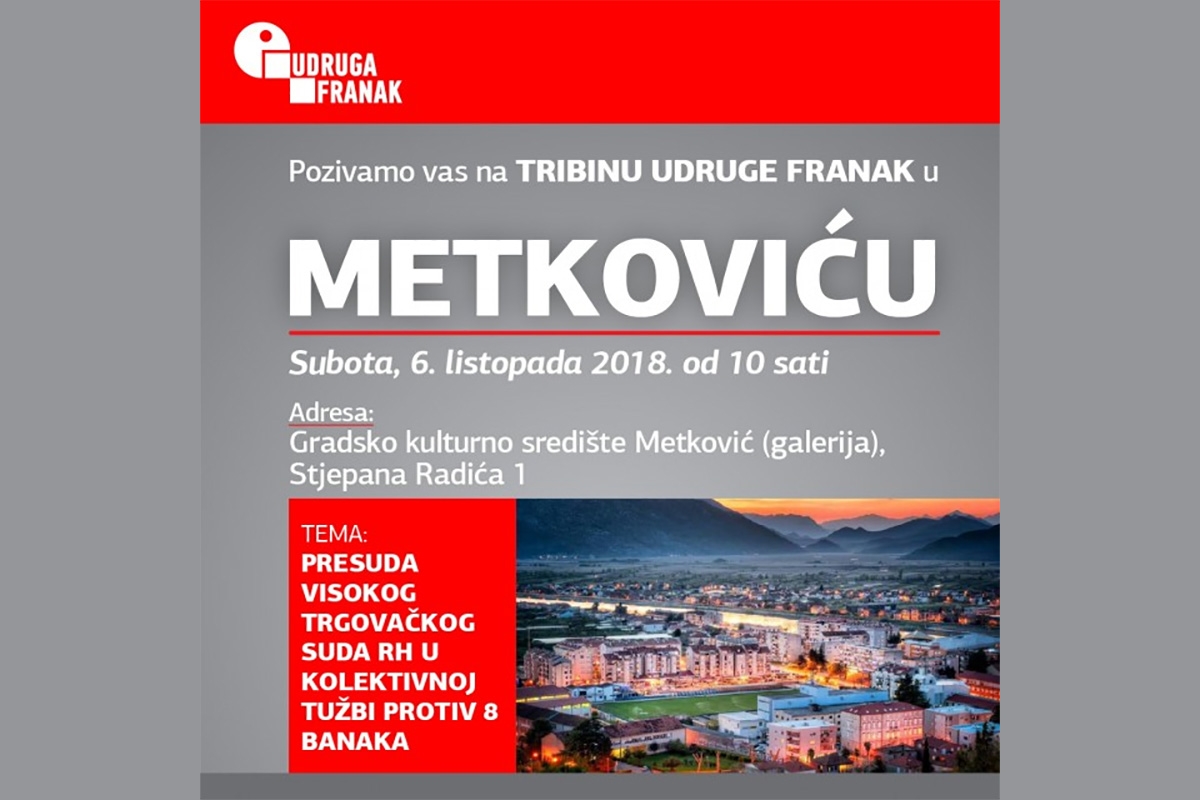 POZIVAMO VAS NA TRIBINU UDRUGE FRANAK U METKOVIĆU