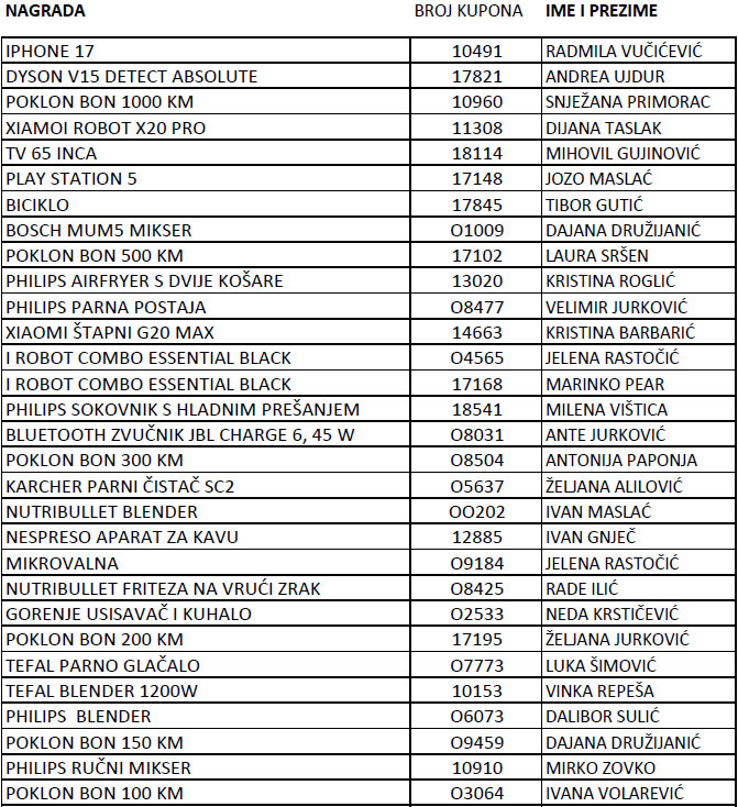 U nastavku donosimo popis svih sretnih dobitnika nagrada