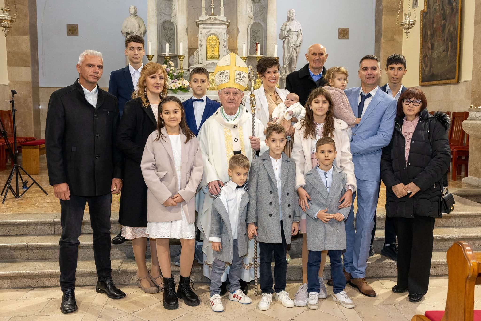 OPUZEN – Svečano i radosno bilo je ove nedjelje, 23. studenoga, u župi sv. Stjepana prvomučenika u Opuzenu. Na svetkovinu Krista Kralja svega stvorenja, splitsko-makarski nadbiskup mons. Zdenko Križić predvodio je misno slavlje tijekom kojeg je krstio dvoje novih članova kršćanske zajednice: Dominika, deveto dijete obitelji Ajduk, te Jonu, drugo dijete obitelji Vučić.