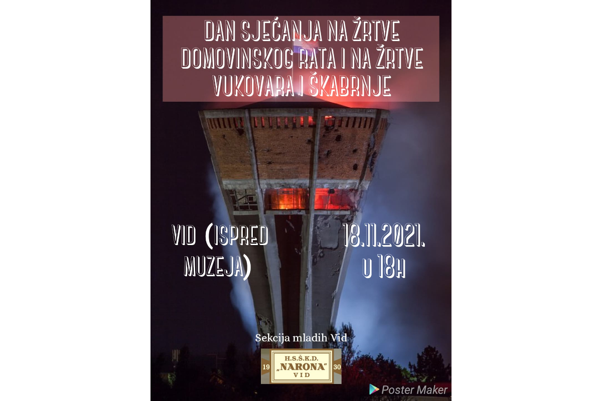Udruga HSŠKD NARONA – Sekcija mladih Vid povodom DANA SJEĆANJA NA ŽRTVE DOMOVINSKOG RATA i DANA SJEĆANJA NA ŽRTVU VUKOVARA I ŠKABRNJE