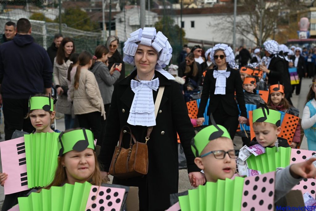 Vesela i bučna mala povorka, praćena glazbom i smijehom, prošetala je gradskim ulicama, pozdravljajući prolaznike i donoseći duh poklada u svaki kutak Metkovića.