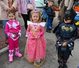 Program je započeo točno u 14:00 sati okupljanjem ispred Dječjeg vrtića. Plato ispred vrtića brzo je postao premalen za sve superjunake, princeze, vile, likove iz crtića i tradicijske maske koje su s nestrpljenjem čekale polazak.
