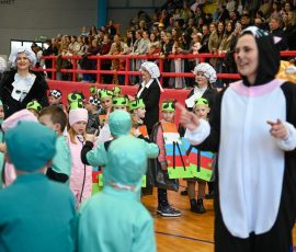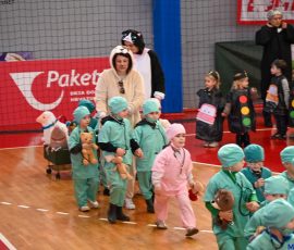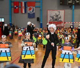 Nakon šetnje gradom, zabava se preselila u Gradsku športsku dvoranu, gdje je u 15:00 sati započeo veliki Dječji maskenbal. Dvorana je bila ispunjena do posljednjeg mjesta, a atmosfera je dovedena do usijanja uz ples, pjesmu i animacijski program prilagođen uzrastu sudionika.