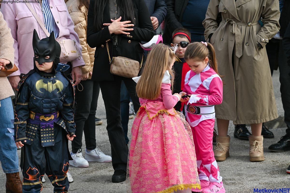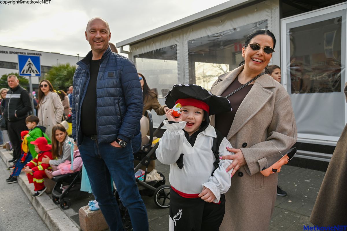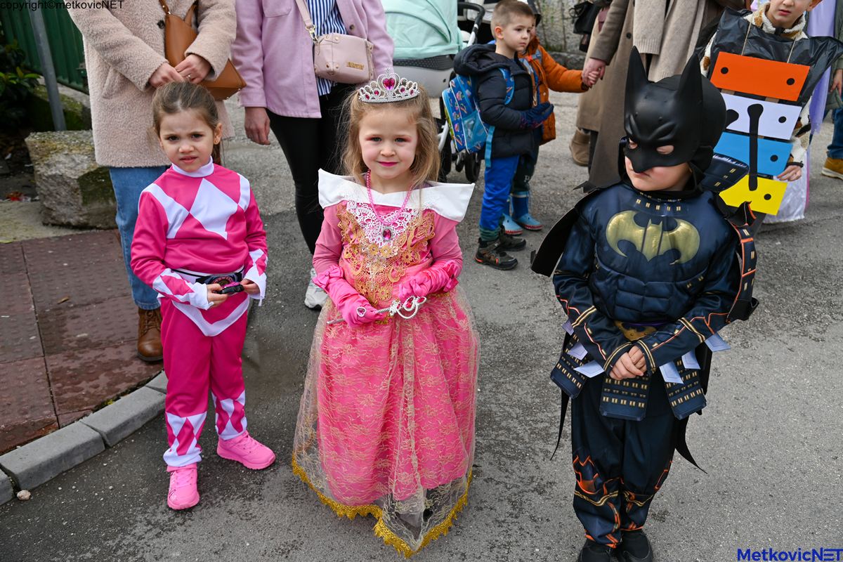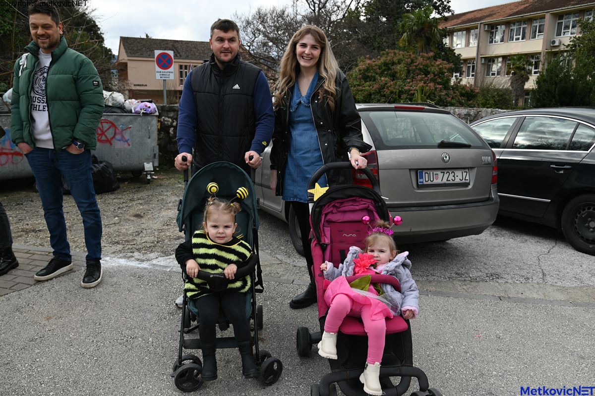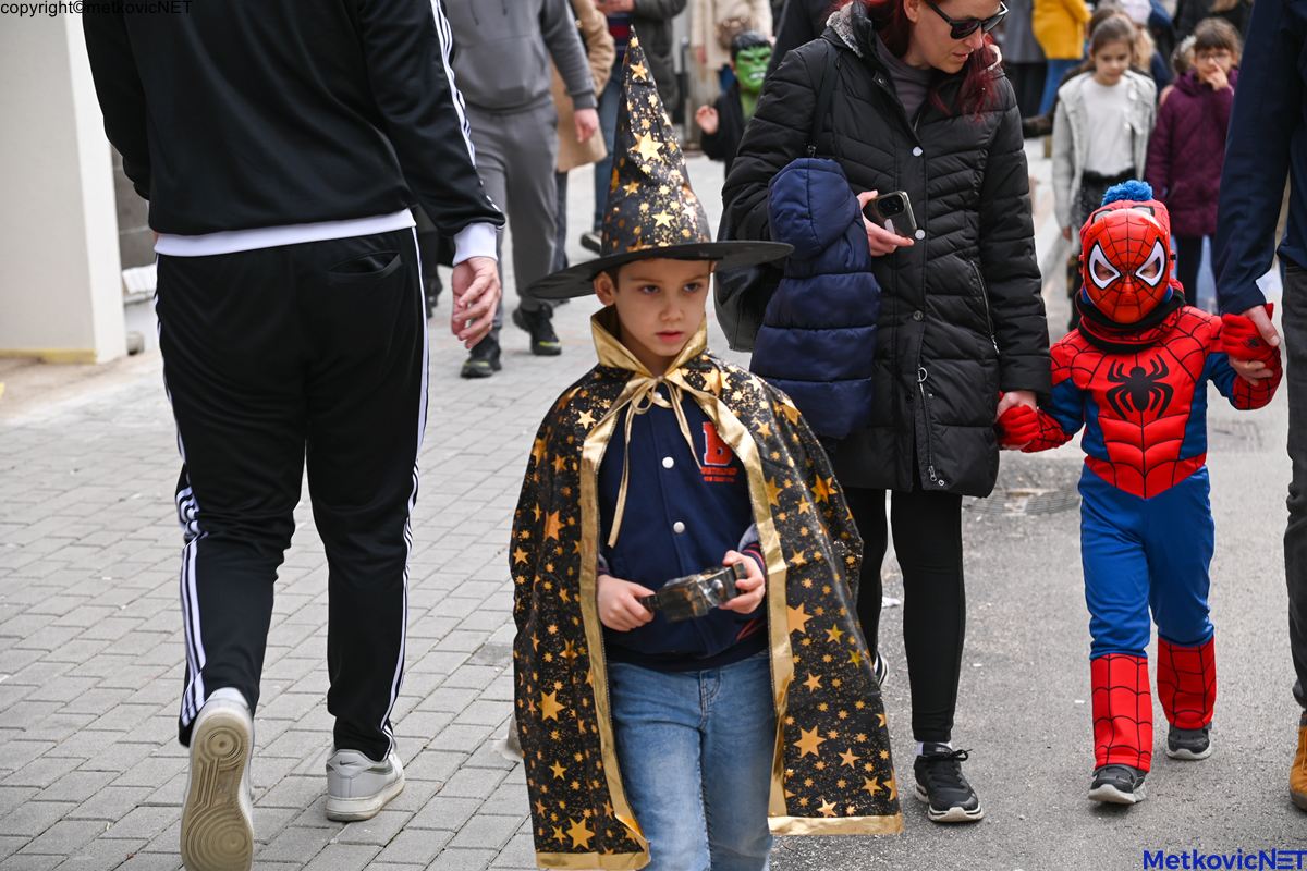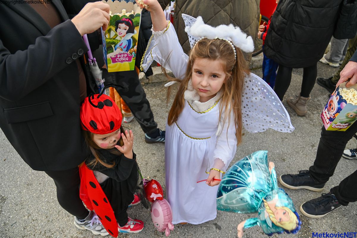 Vesela i bučna mala povorka, praćena glazbom i smijehom, prošetala je gradskim ulicama, pozdravljajući prolaznike i donoseći duh poklada u svaki kutak Metkovića.