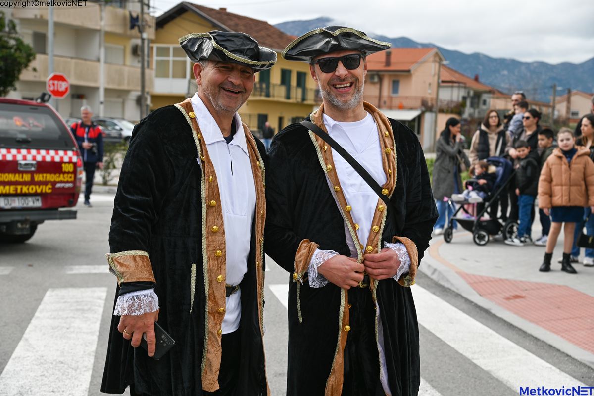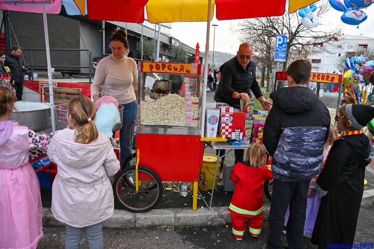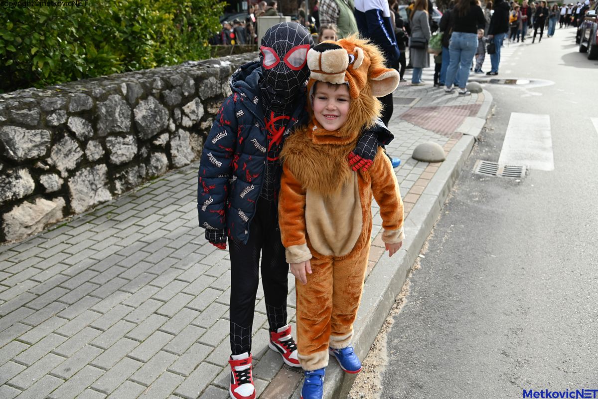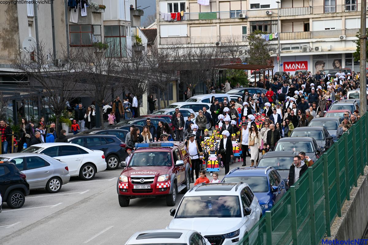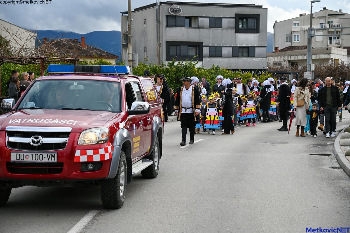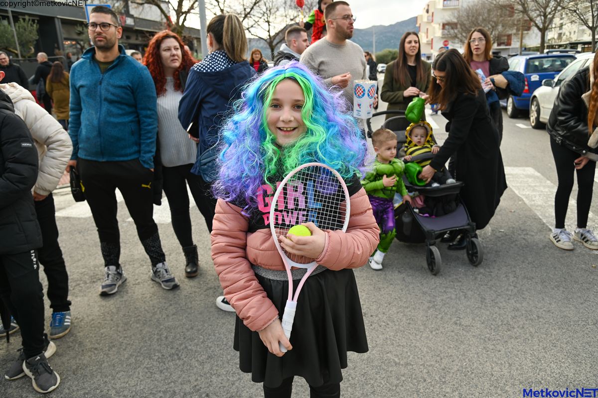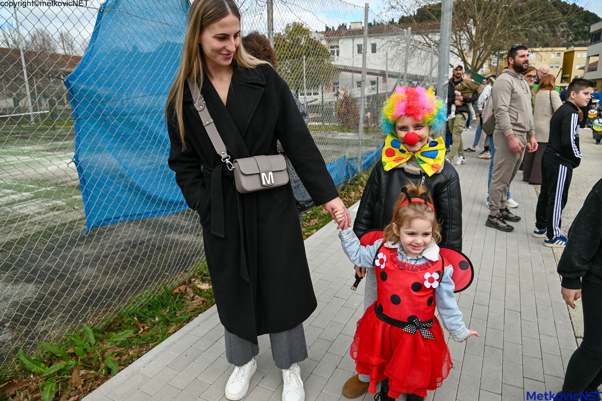 Vesela i bučna mala povorka, praćena glazbom i smijehom, prošetala je gradskim ulicama, pozdravljajući prolaznike i donoseći duh poklada u svaki kutak Metkovića.