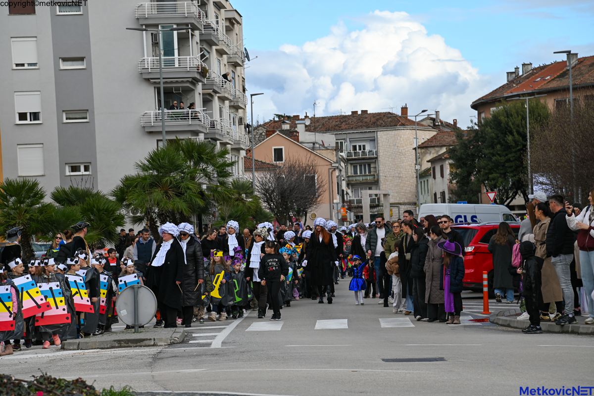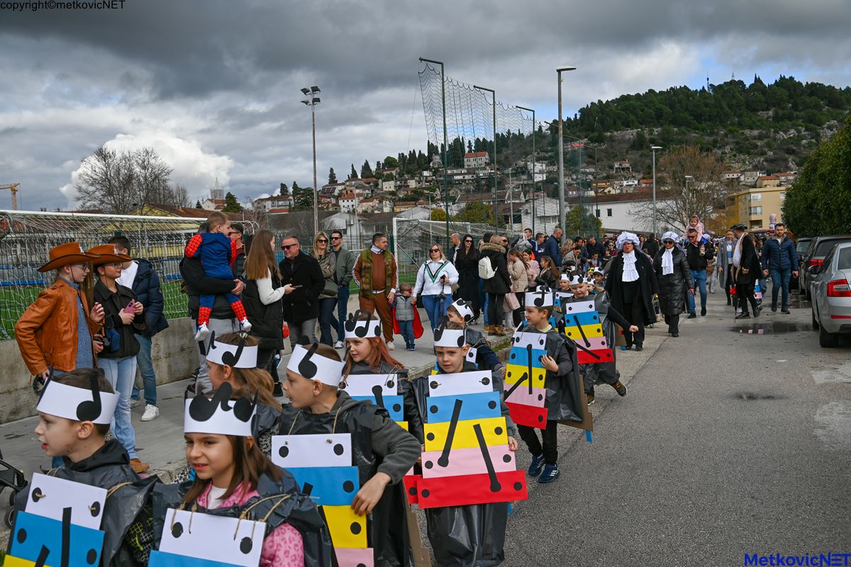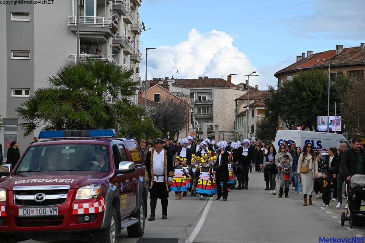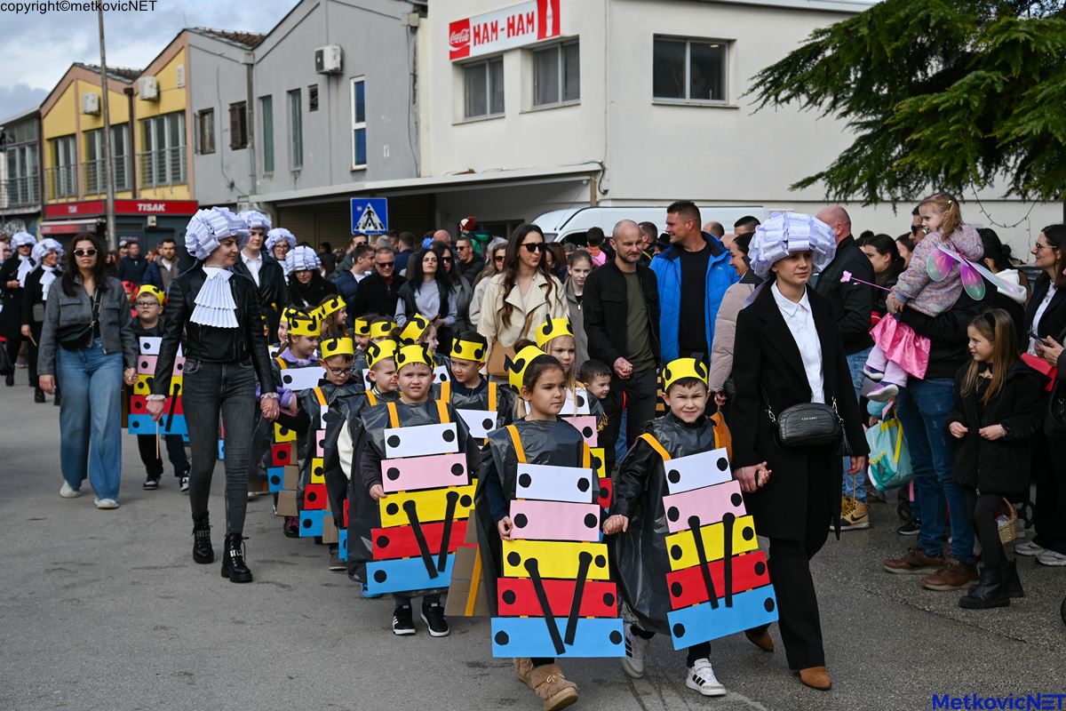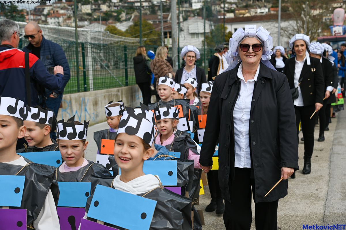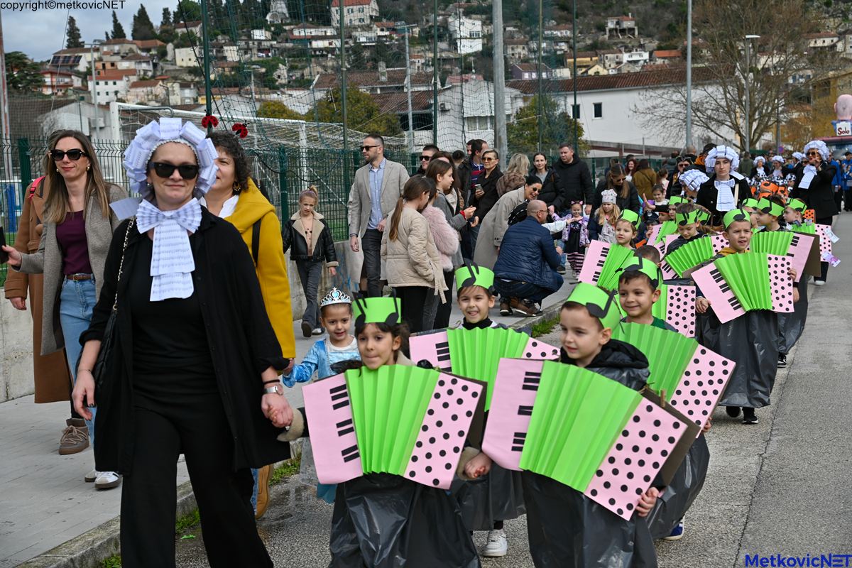 Vesela i bučna mala povorka, praćena glazbom i smijehom, prošetala je gradskim ulicama, pozdravljajući prolaznike i donoseći duh poklada u svaki kutak Metkovića.