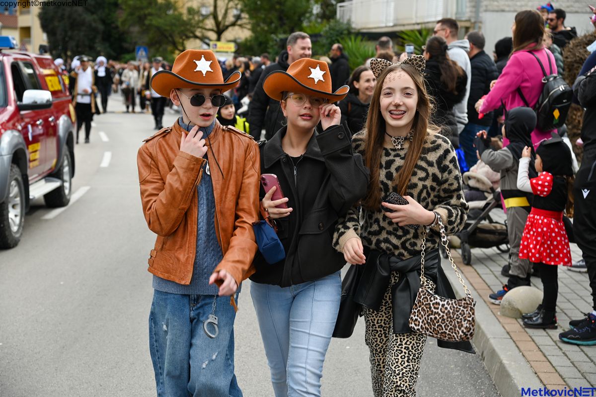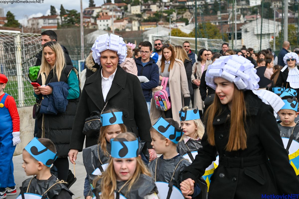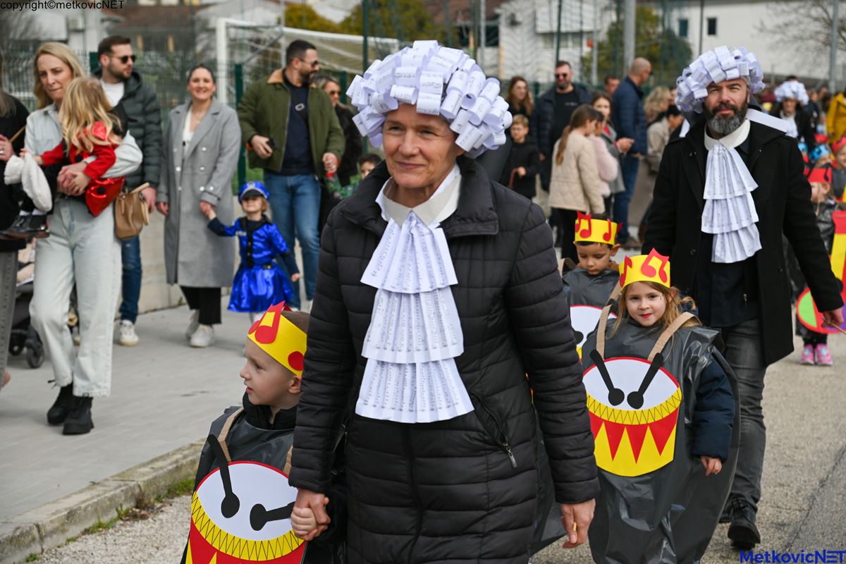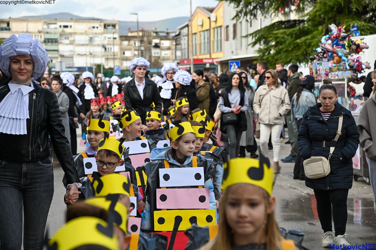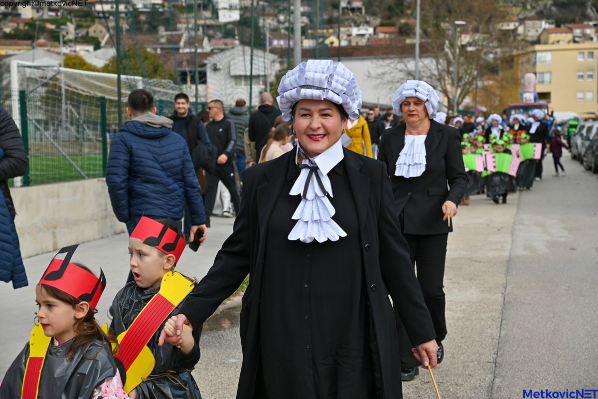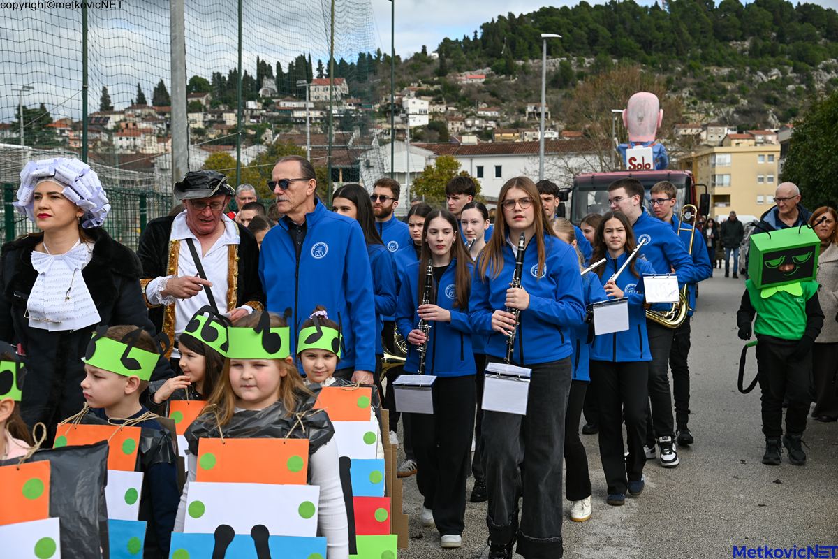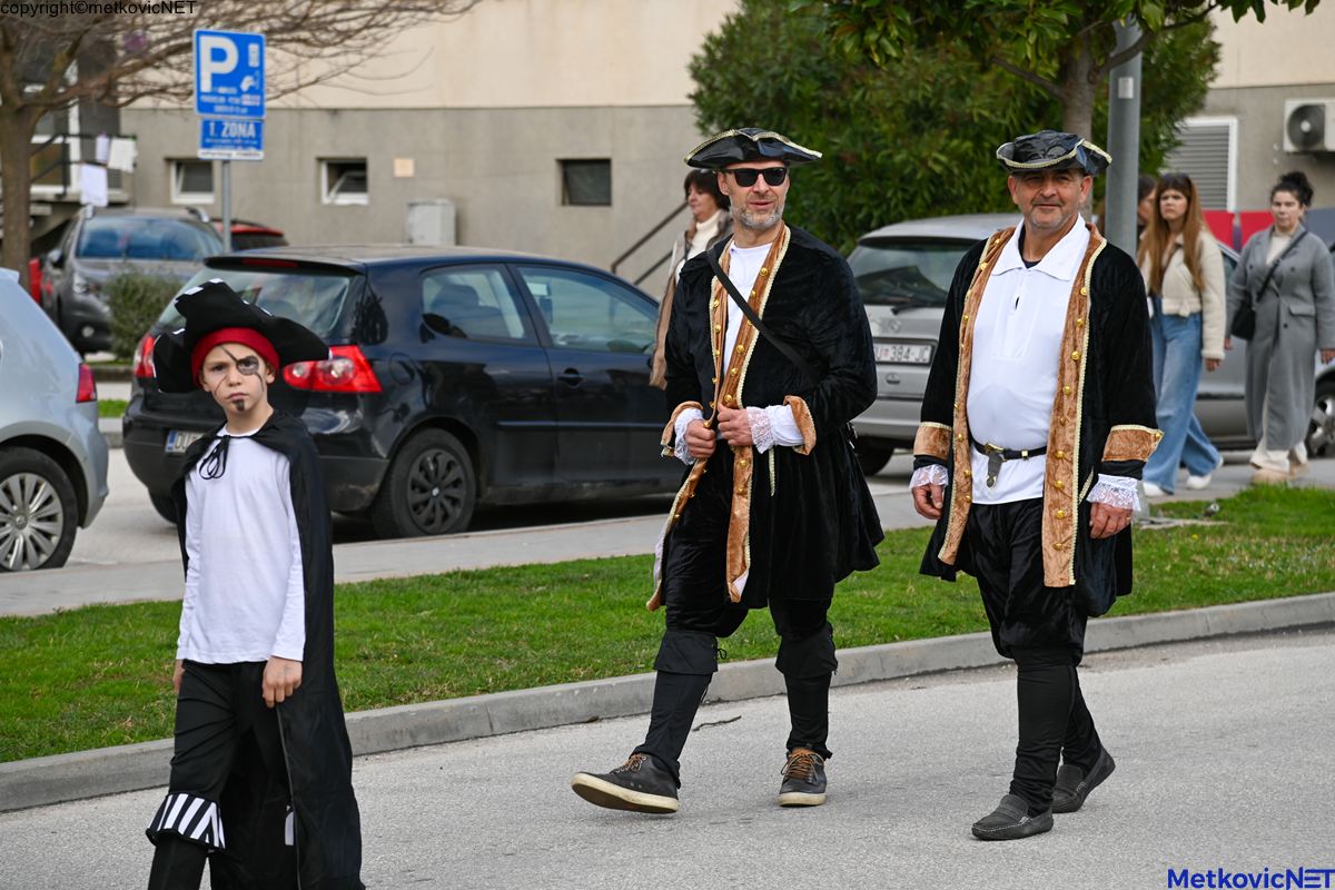 Vesela i bučna mala povorka, praćena glazbom i smijehom, prošetala je gradskim ulicama, pozdravljajući prolaznike i donoseći duh poklada u svaki kutak Metkovića.