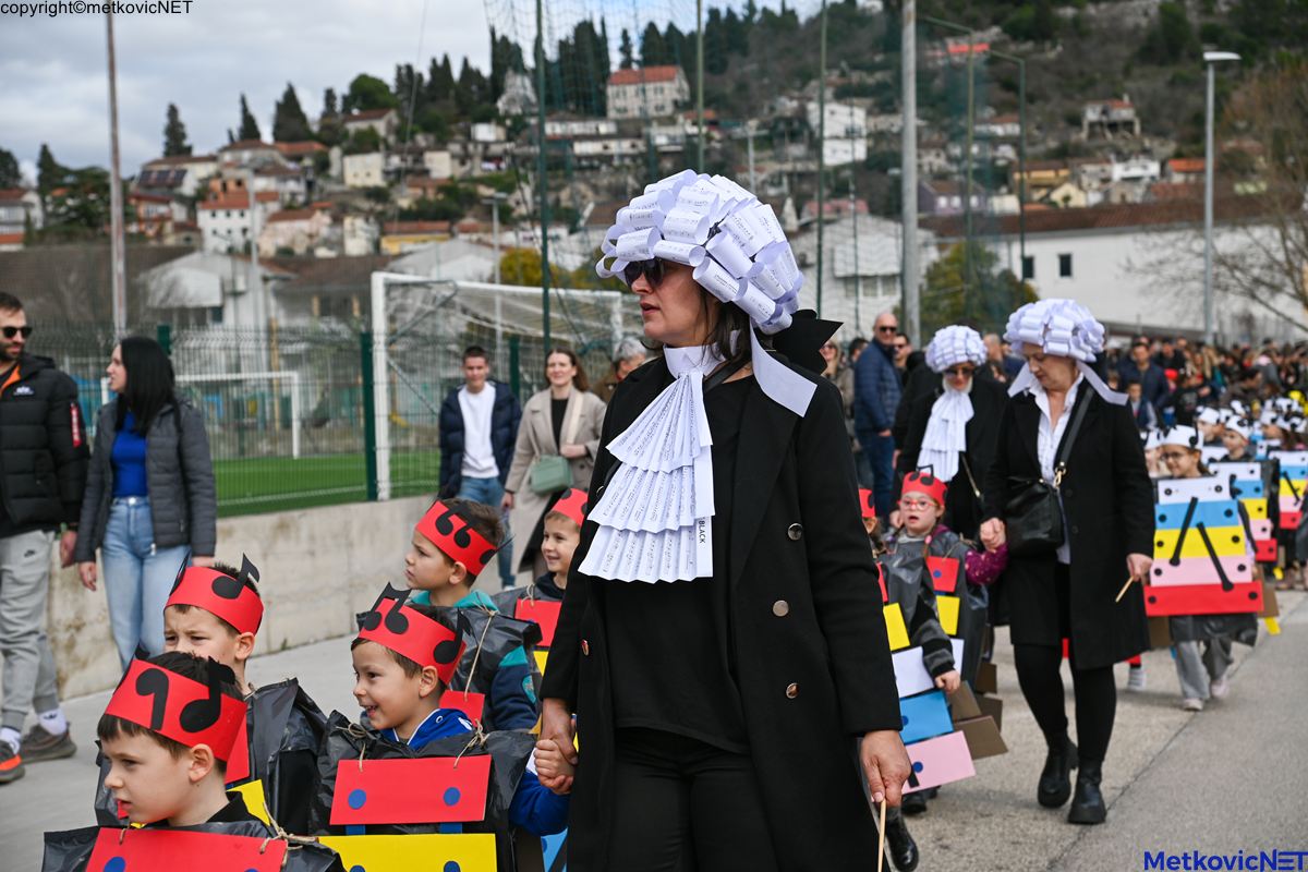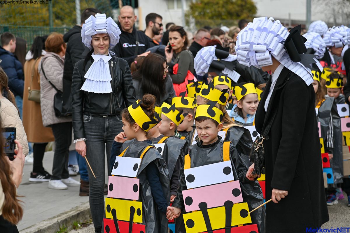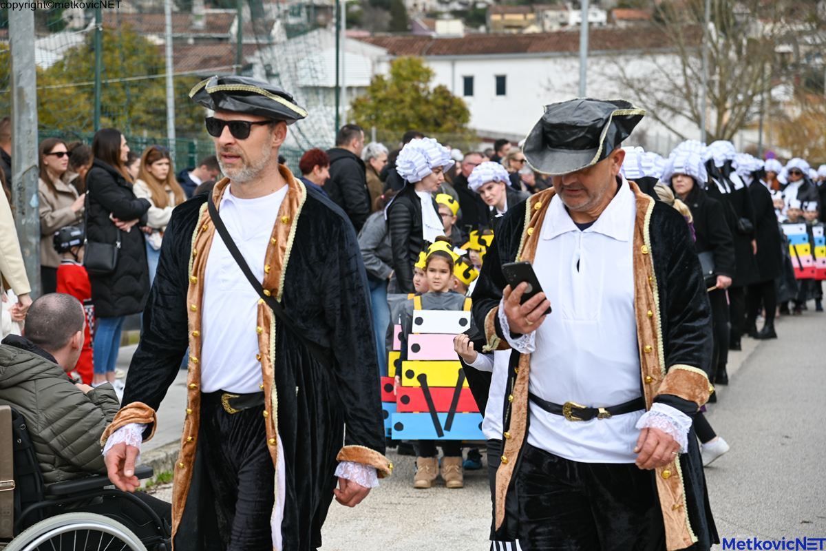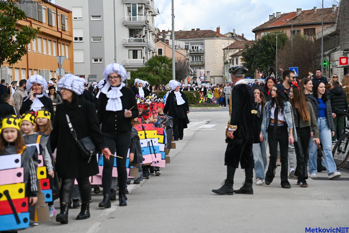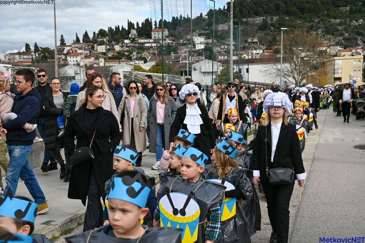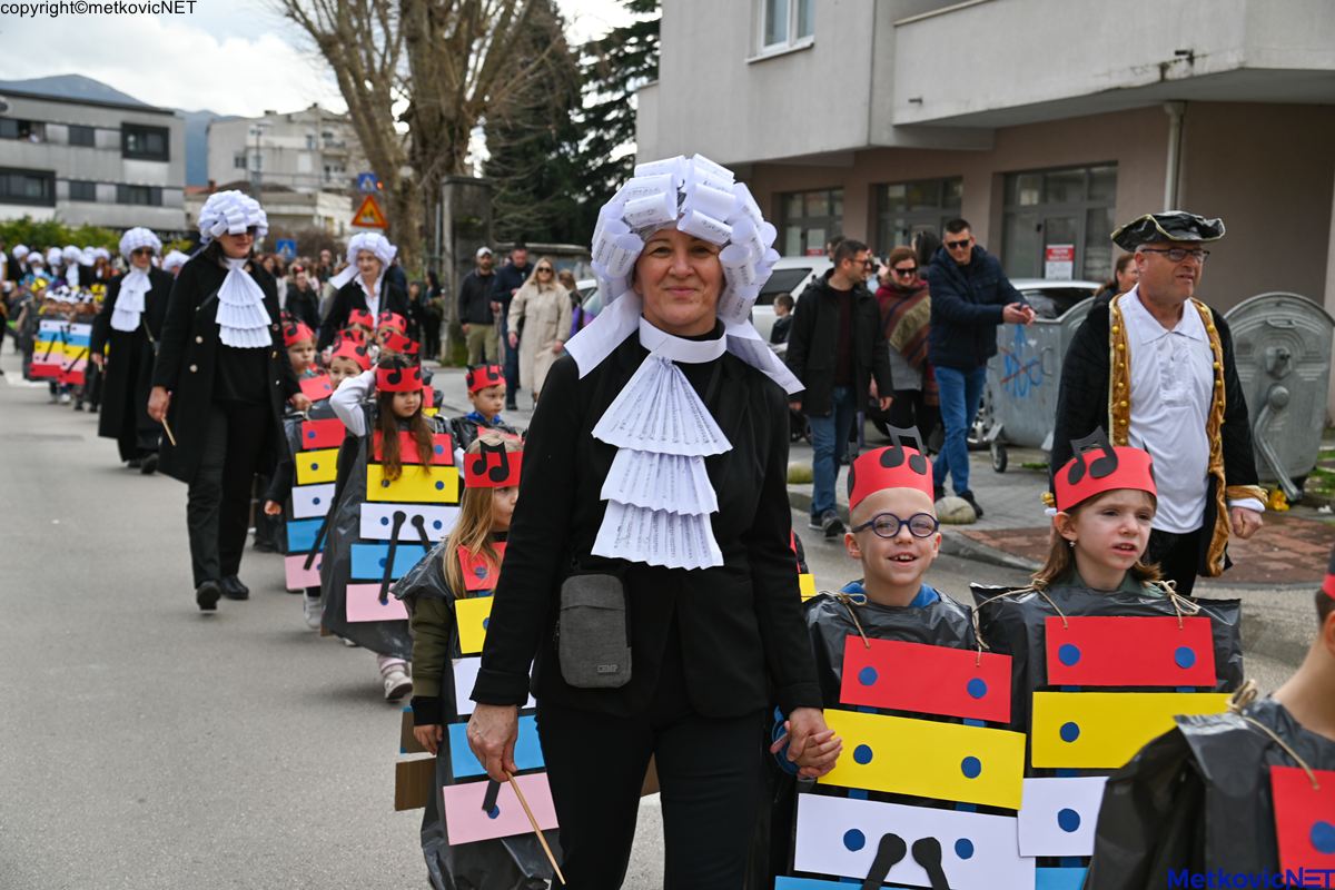 Vesela i bučna mala povorka, praćena glazbom i smijehom, prošetala je gradskim ulicama, pozdravljajući prolaznike i donoseći duh poklada u svaki kutak Metkovića.