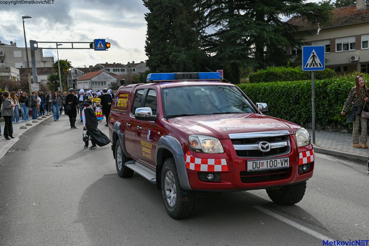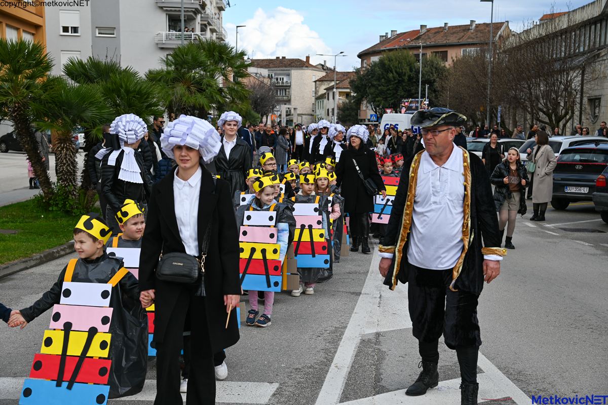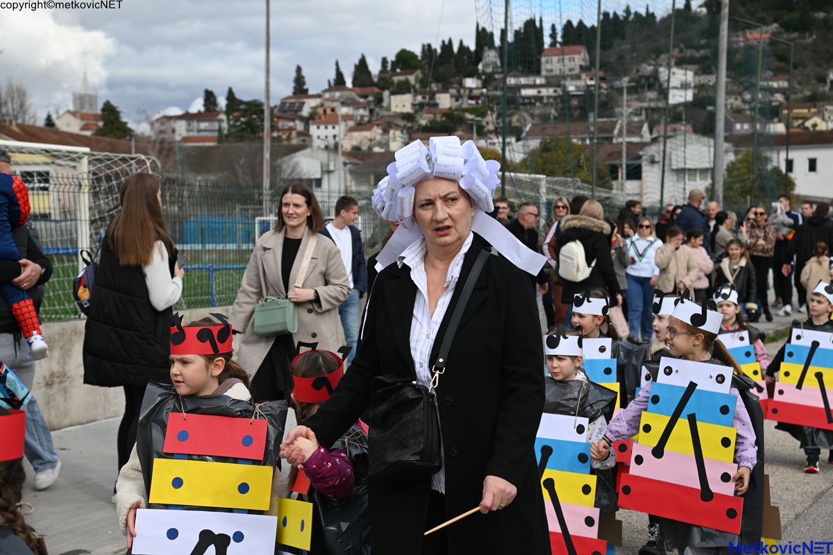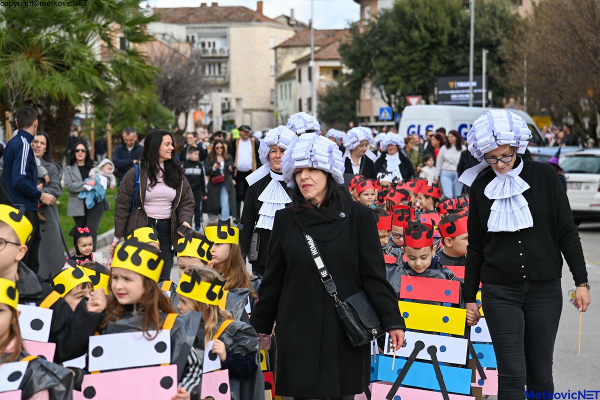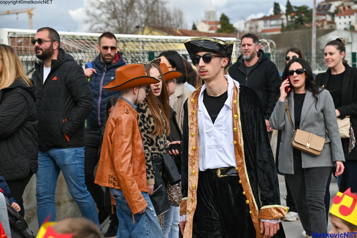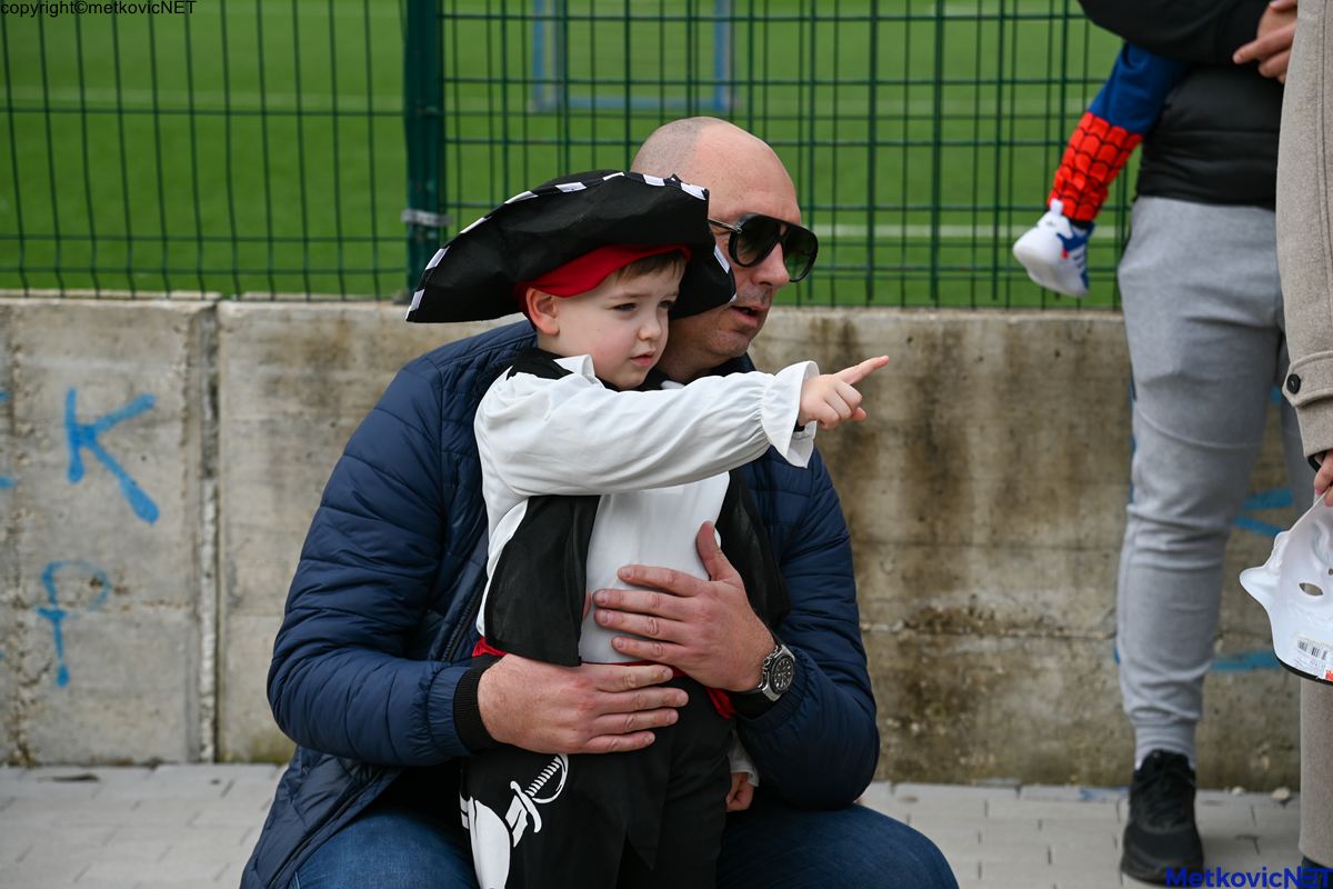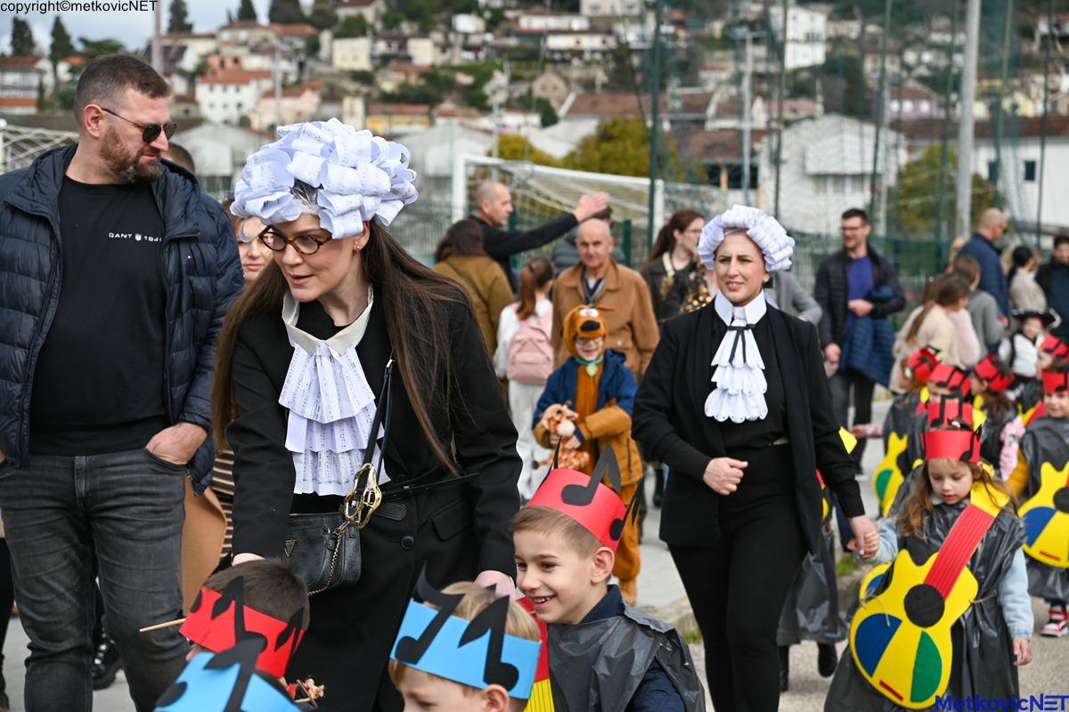 Vesela i bučna mala povorka, praćena glazbom i smijehom, prošetala je gradskim ulicama, pozdravljajući prolaznike i donoseći duh poklada u svaki kutak Metkovića.