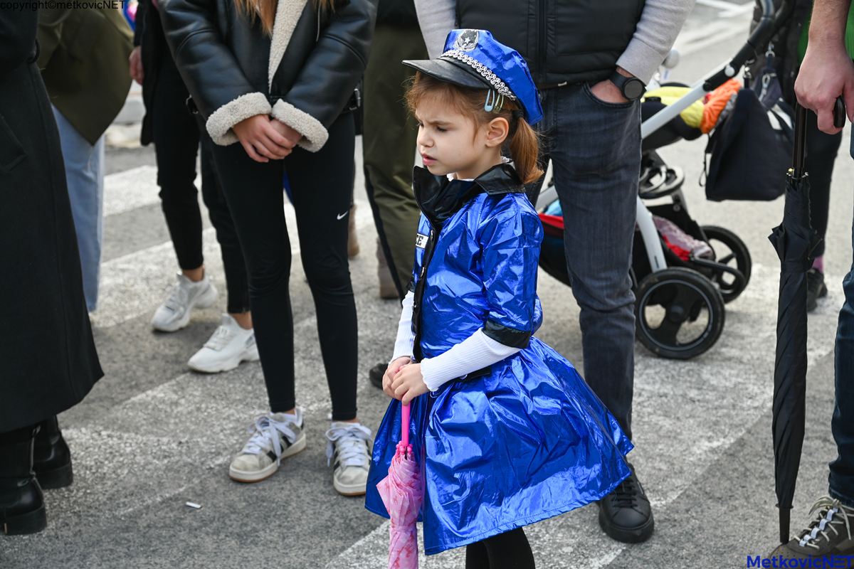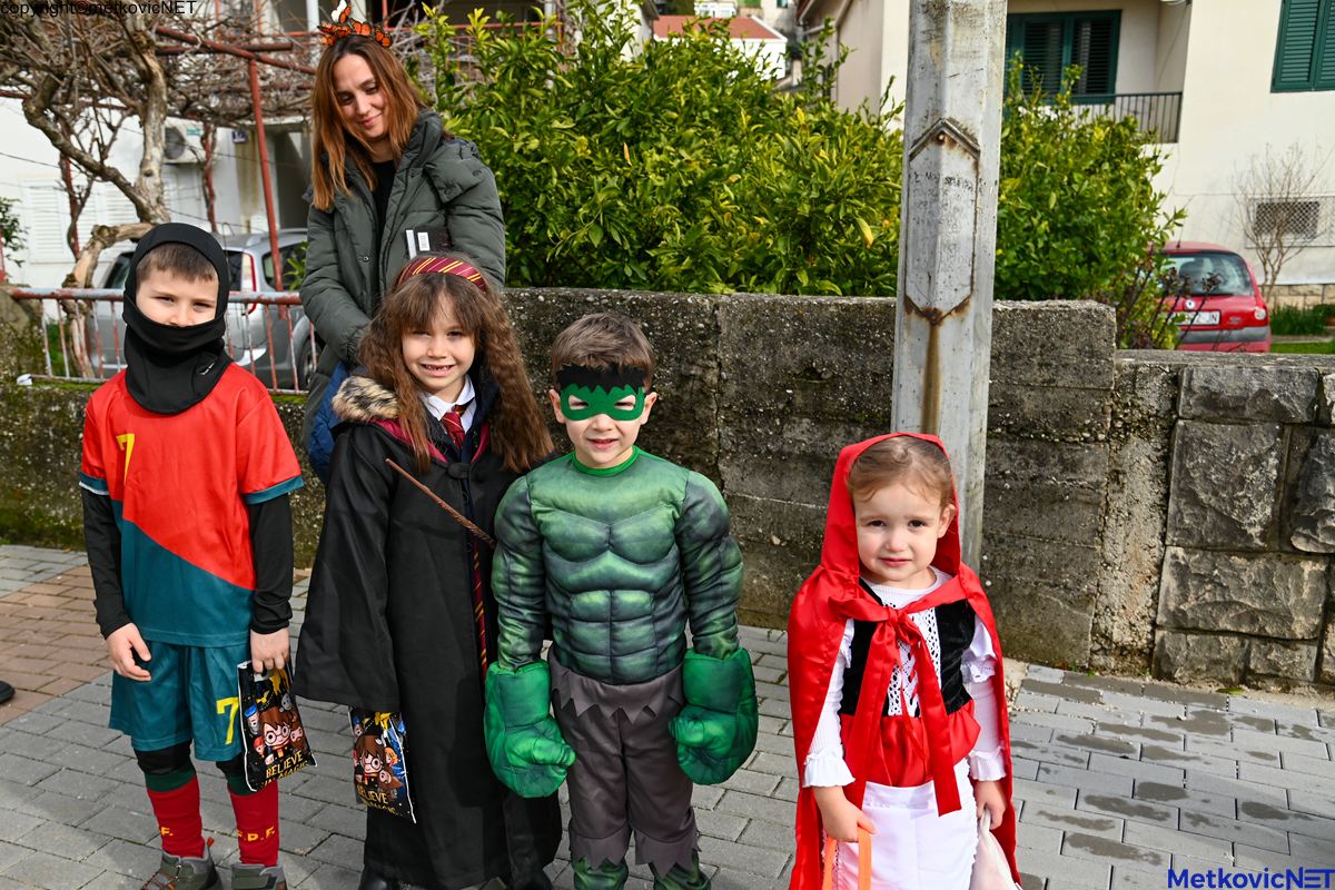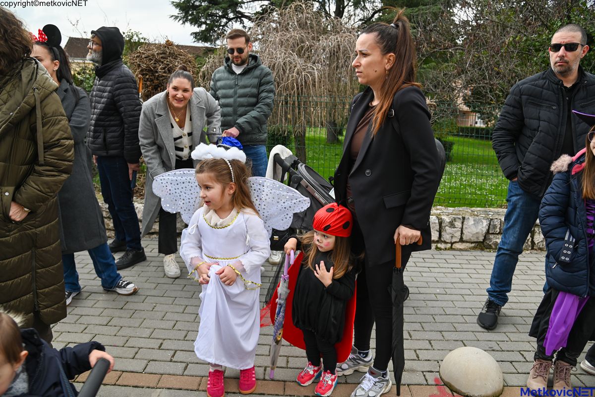 Program je započeo točno u 14:00 sati okupljanjem ispred Dječjeg vrtića. Plato ispred vrtića brzo je postao premalen za sve superjunake, princeze, vile, likove iz crtića i tradicijske maske koje su s nestrpljenjem čekale polazak.