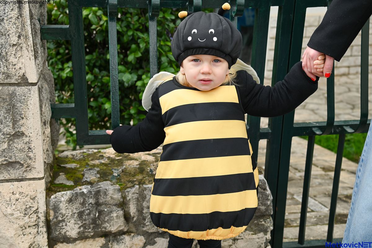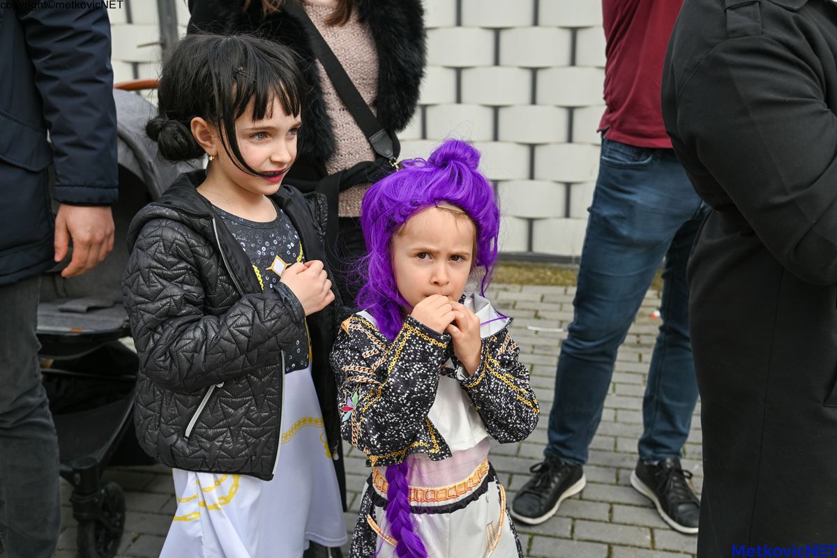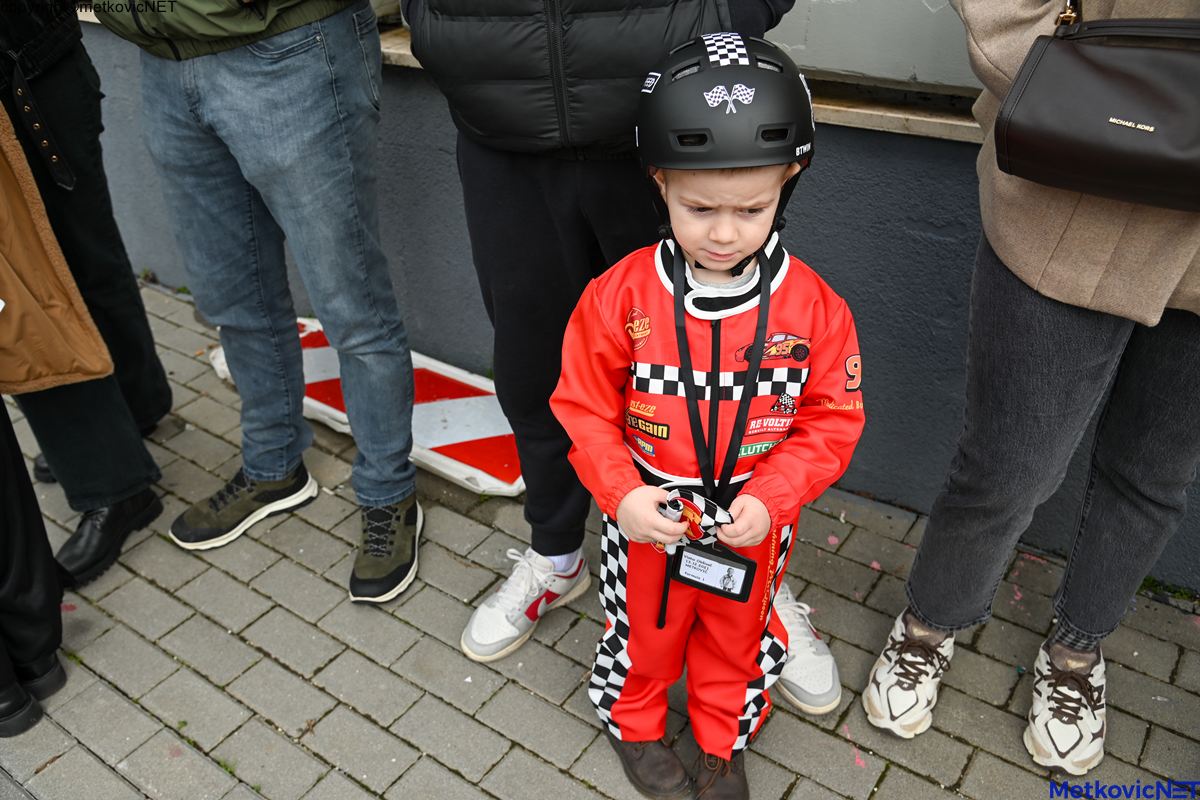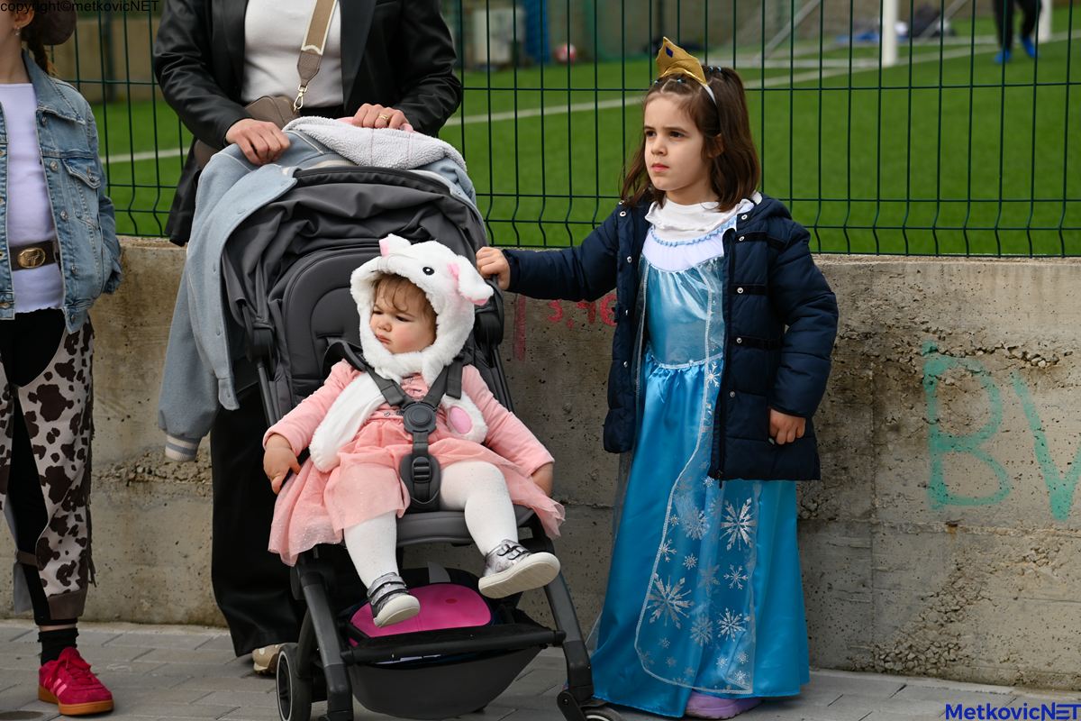 Program je započeo točno u 14:00 sati okupljanjem ispred Dječjeg vrtića. Plato ispred vrtića brzo je postao premalen za sve superjunake, princeze, vile, likove iz crtića i tradicijske maske koje su s nestrpljenjem čekale polazak.
