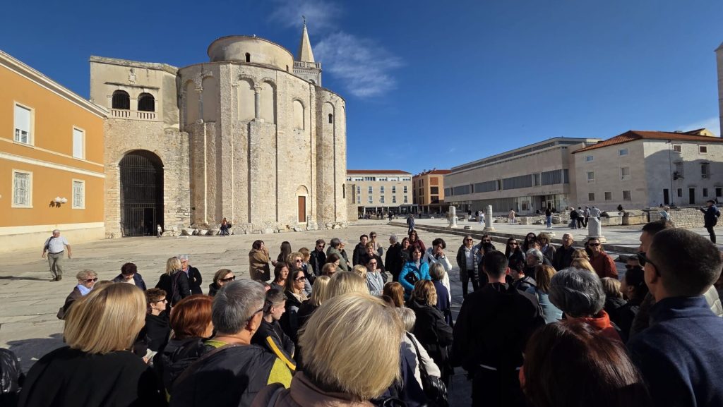 U Zadar smo stigli oko 10 sati ujutro, pod vedrim plavim nebom i toplim jesenskim suncem. Naše prvo odredište bila je katedrala svete Stošije (Anastazije) – najveća crkva na Jadranu, koja svojom veličinom i ljepotom oduševljava svakog posjetitelja.