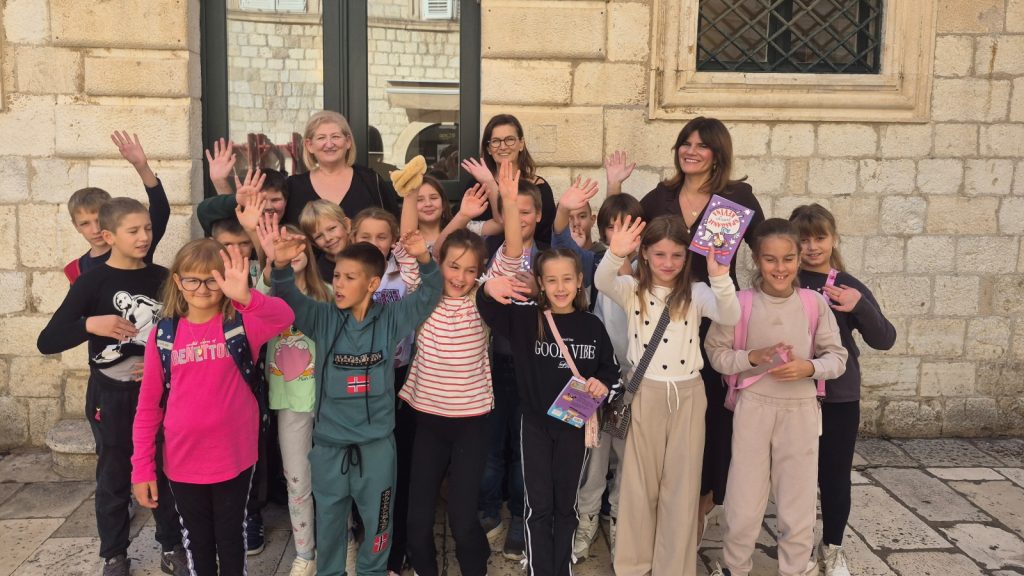 Pročelnica Upravnog odjela za obrazovanje, kulturu i sport Jelena Dadić Račić primila je u palači Ranjina učenike trećeg razreda Osnovne škole Stjepana Radića iz Metkovića i njihovu učiteljicu Aleksandru Lukić Skelić.