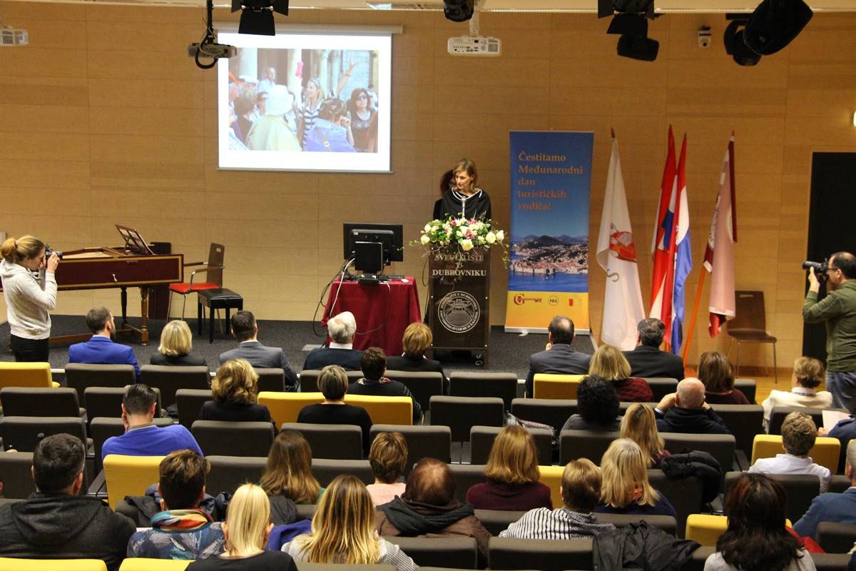 ”Znamo iz prošlosti da su goste u ove krajeve najčešće dovodili poslovi vezani uz trgovinu, pomorstvo, diplomaciju, graditeljstvo…Oni Dubrovnik nisu gledali tad očima kojima ga mi vidimo danas, no ta se prizma s vremenom mijenjala. Svijest gradskih…domaćih ljudi, književnika, povjesničara, profesora i drugih uglednika potaknutih na pokazivanje dubrovačkih ljepota dovela je u grad značajne osobe iz kulturnog i književnog života zemlje i inozemstva. S rastom broja turista, a posebice od 60-ih godina prošlog stoljeća kada su gosti na kružnim putovanjima dolazili s parobrodovima, potreba za turističkim vodičima, ali i Društvom koje ih objedinjuje bila je sve jasnija i izraženija”, rekla je zamjenica Marević te dodala kako se vodiči danas suočavaju s novim izazovima na tržištu EU.