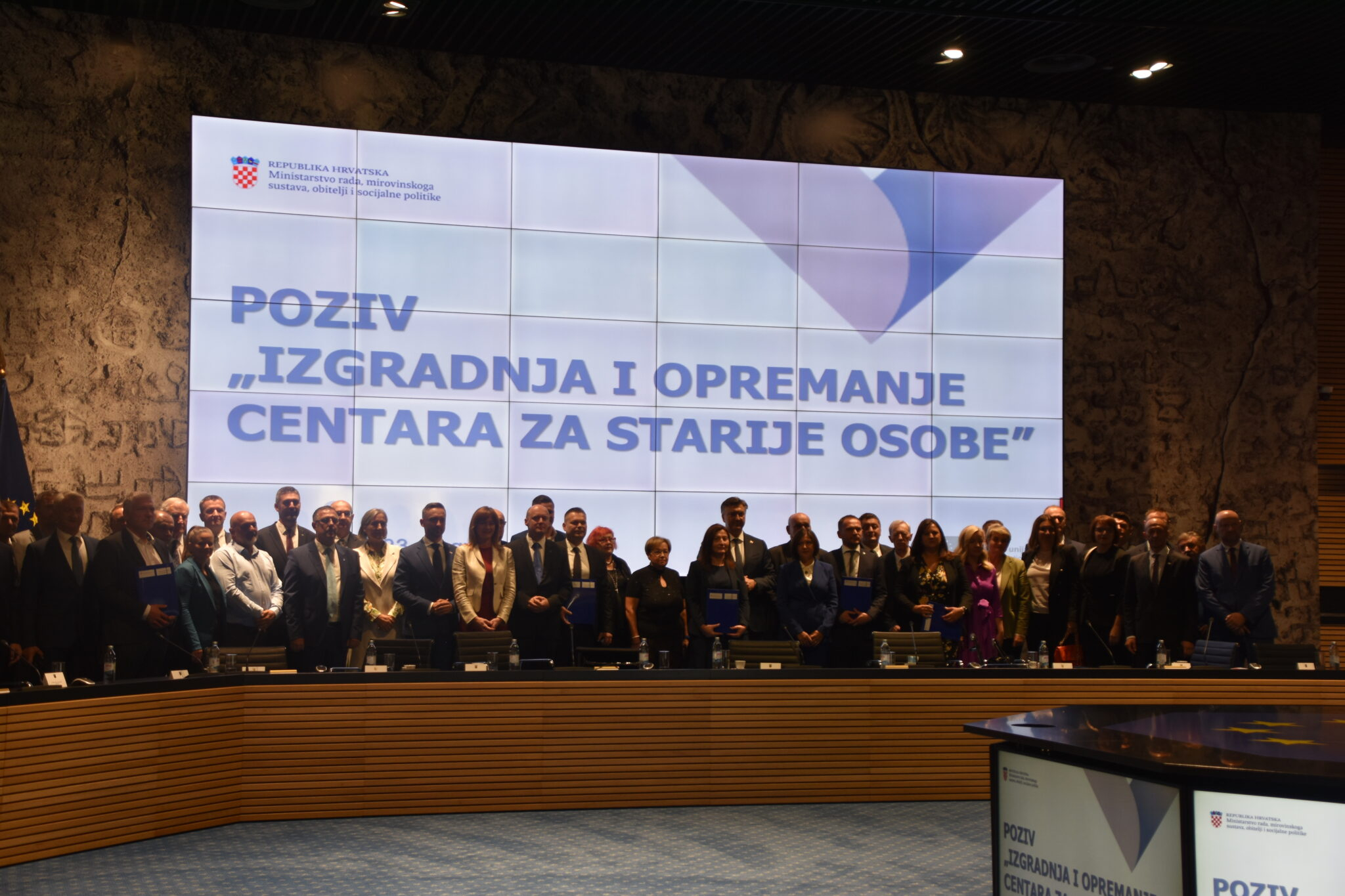 Predsjednik Vlade Andrej Plenković i ministar rada, mirovinskoga sustava, obitelji i socijalne politike Marin Piletić uručili su danas ugovore za izgradnju i opremanje 18 centara za starije osobe u vrijednosti 159 milijuna eura, a koji će imati nešto više od 1800 smještajnih kapaciteta i izvaninstitucijskih usluga za nešto više od 4500 korisnika